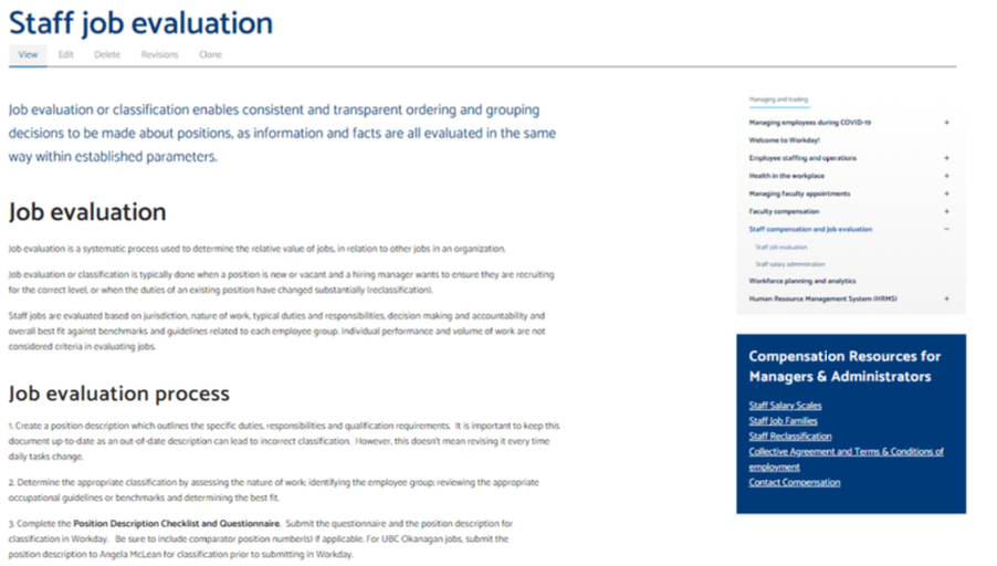 In the short term I was able to improve the interlinking experience by adding various visual cues to link similar content together. For example, if faculty were looking for Faculty job evaluation information and they landed on the staff page, there would be a link to the faculty area underneath the side navigation.